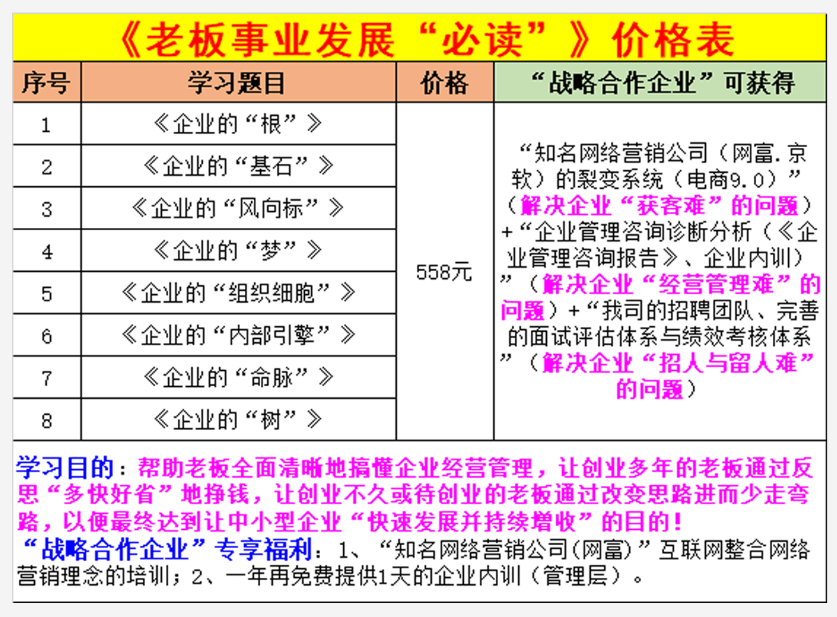 《老板事业发展“必读”》将价值几千上万的内训课程以“558元”出售