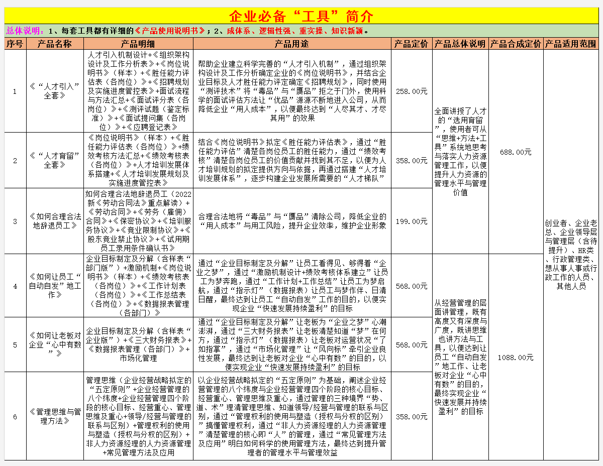 《个人职业发展“必读”》《老板事业发展“必读”》!最主要是:成体系、逻辑性强、重实操、知识新颖。最大的不足:落地的方法与工具较少!为此,除“一对一培训咨询”、企业“管理咨询”或“战略合作”外,也推出《企业必备“工具”》以便达到“思维+方法+工具”的完美结合!
